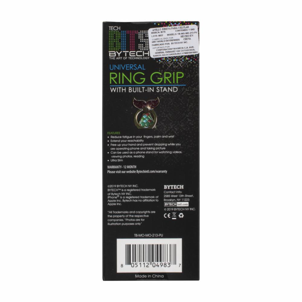 El anillo con agarre para celular de BYTECH con diseño de sirena es una opción divertida y funcional para mejorar la sujeción de tu dispositivo móvil, evitando caídas y proporcionando mayor comodidad