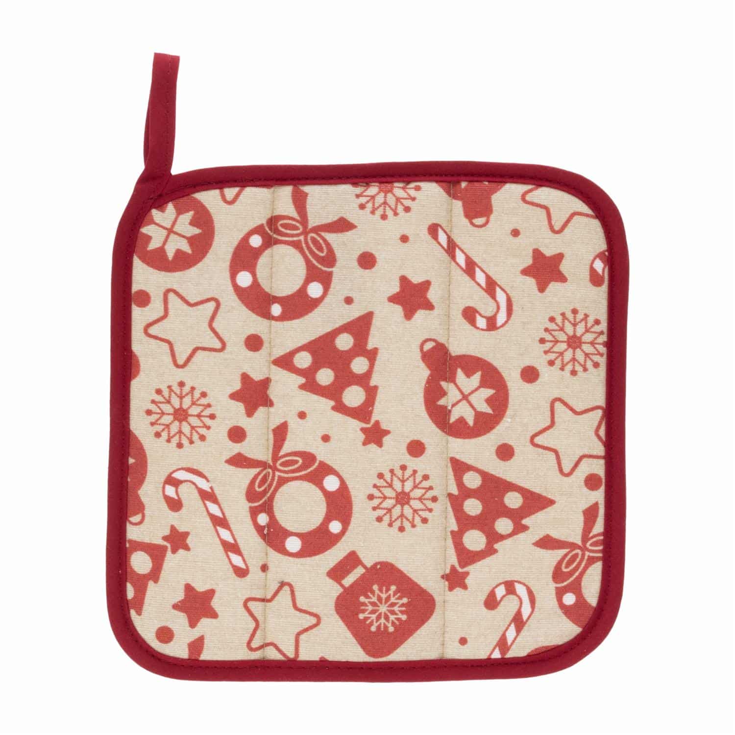 Coge Ollas Navidad Habano Con Rojo HECHO AQUÍ 20 X 20 Cm