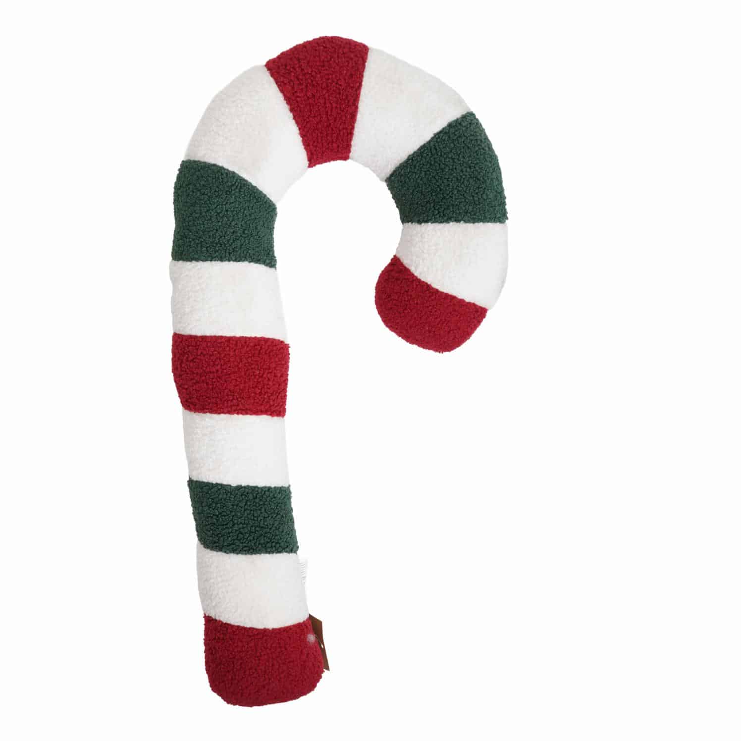 Llena tu hogar de color y alegría navideña con este cojín en forma de bastón tricolor