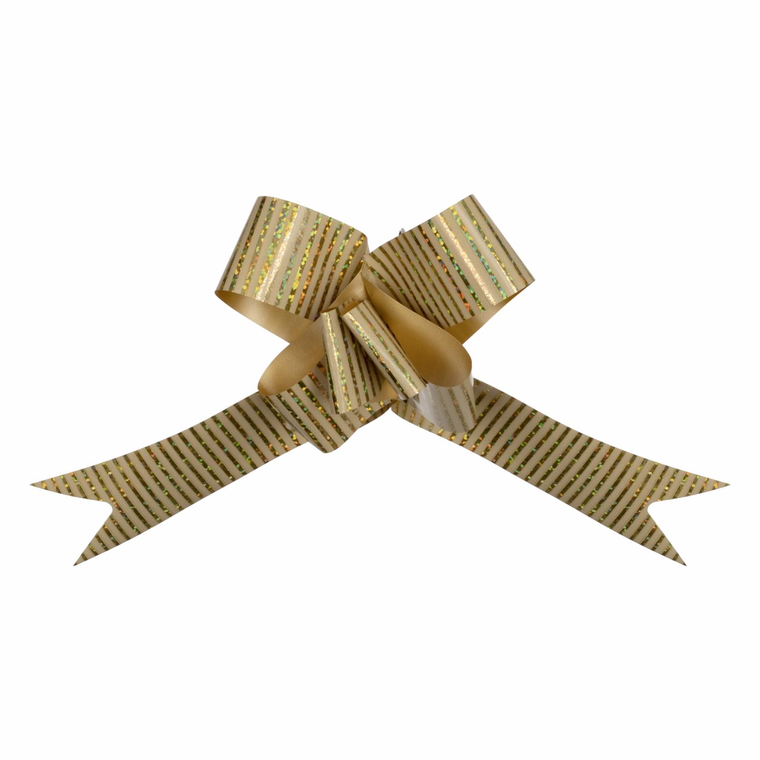 Lazo Mágico Para Regalos Dorado Impreso Paralelos Blanco SPLENDOR 42 Cm X 19 Mm