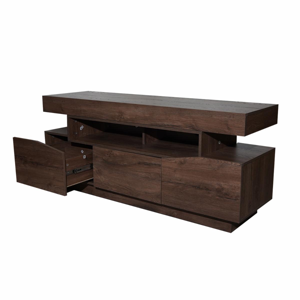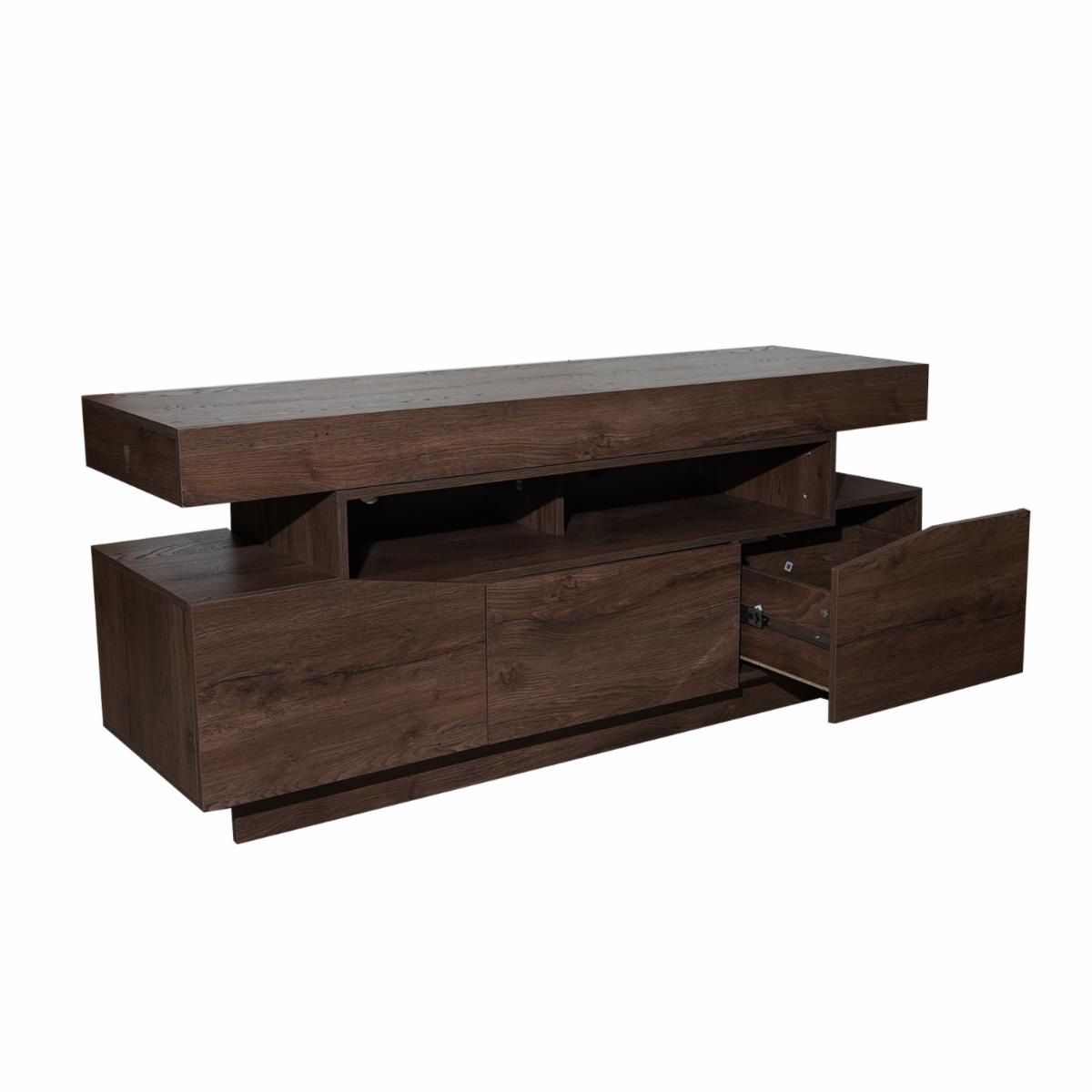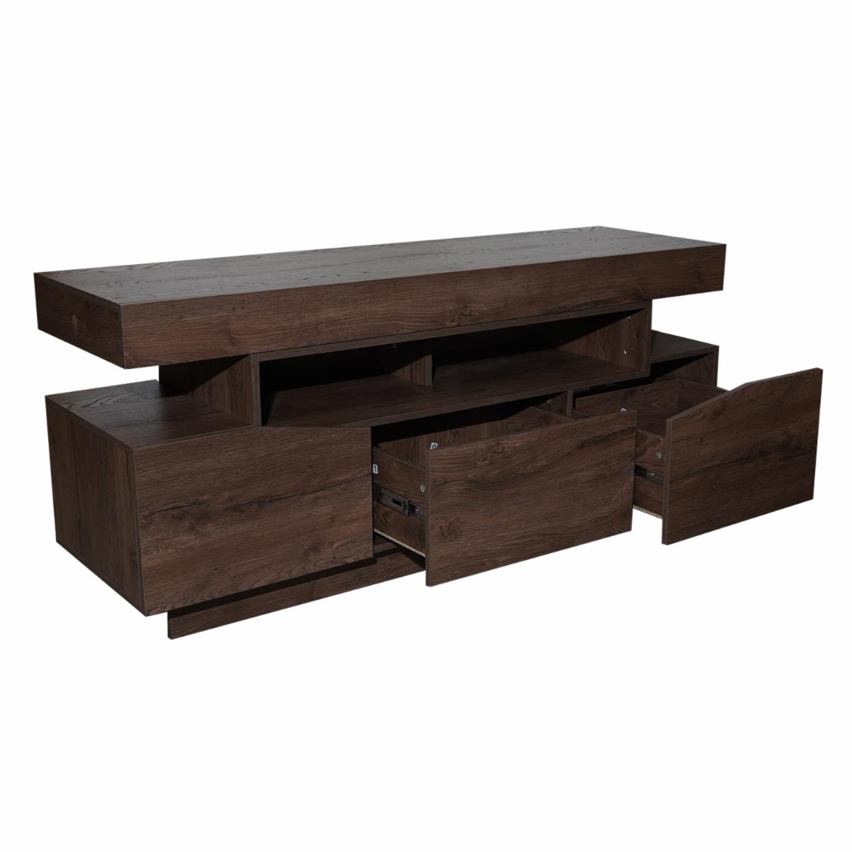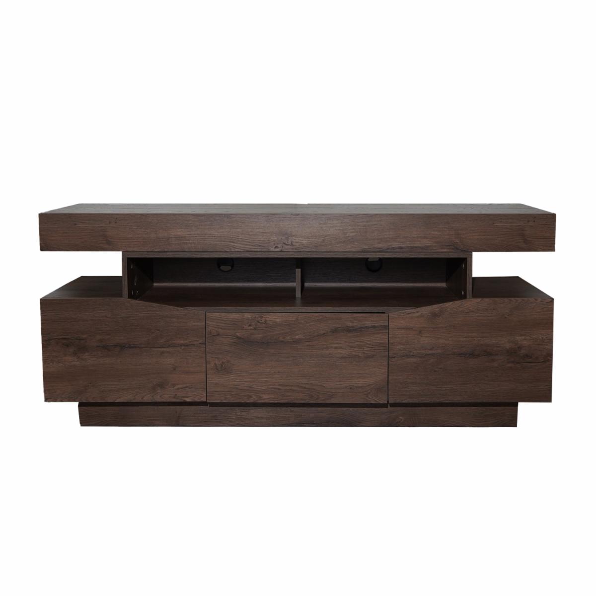 El rack para tv de 65» es un mueble moderno y funcional. Cuenta con 3 cajones para almacenamiento y espacio para colocar elementos decorativos. está fabricado en madera aglomerada estándar y recubrimiento melánico, lo que le aporta resistencia y durabilidad