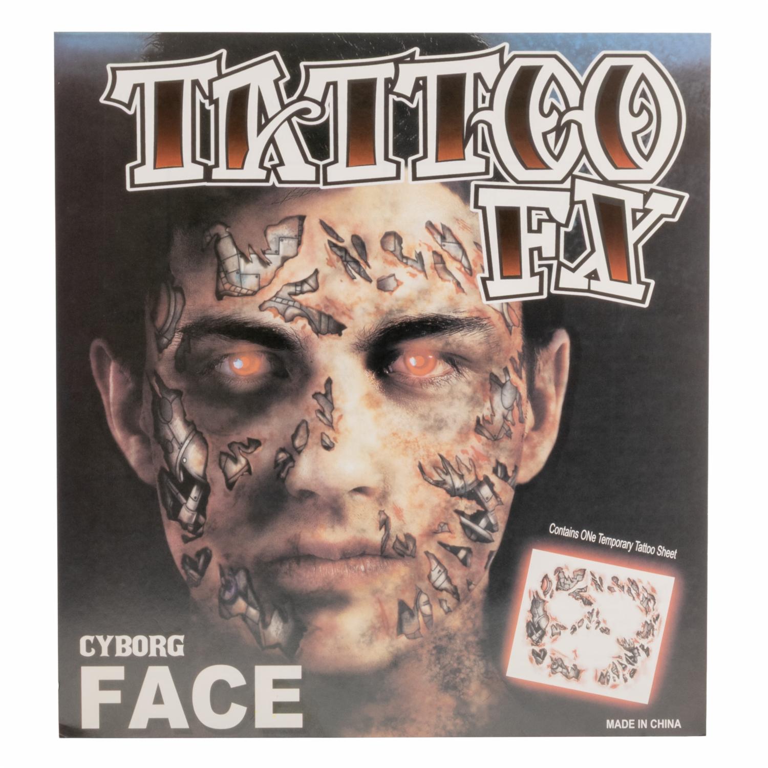 ¡Convierte tu look en toda una obra de arte futurista y terrorífica! Este tatuaje facial con diseño cyborg es perfecto para darle un toque único y original a tu disfraz de Halloween. Fácil de aplicar y con detalles que impresionan, ¡serás el centro de todas las miradas!