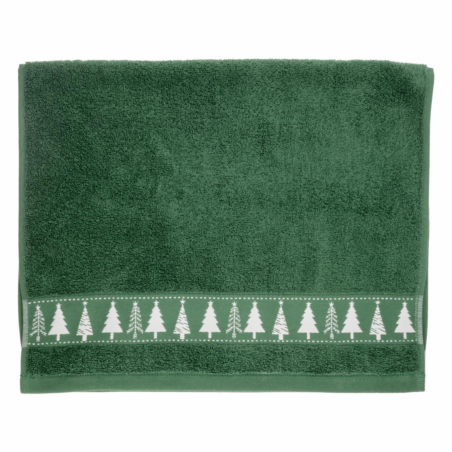 Toalla De Manos Navideña Verde Con Arbolitos RENATTA 80X50 Cm