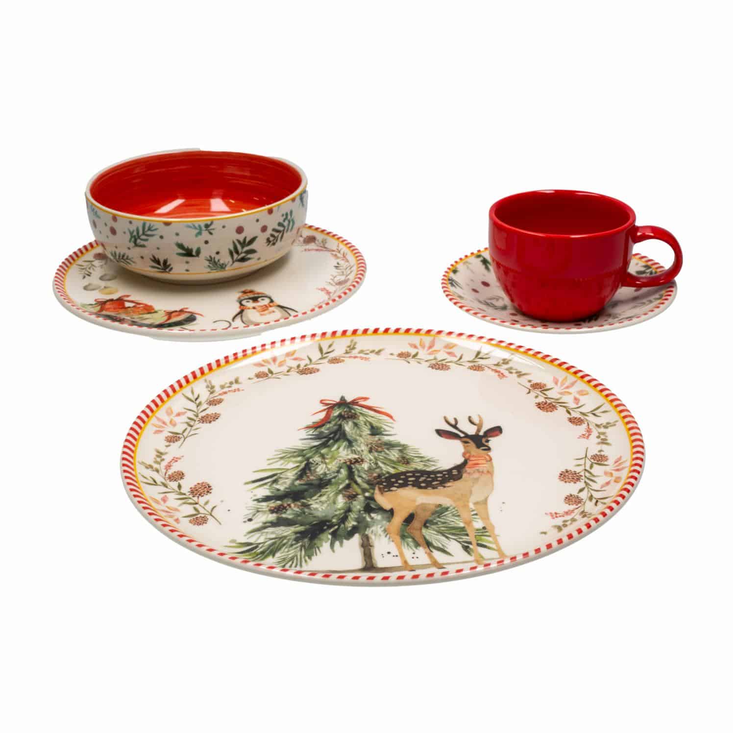 Celebra las fiestas con la elegante Vajilla Ilusión Navideña. Este set de 20 piezas incluye todo lo necesario para 4 puestos, con un hermoso diseño que evoca el espíritu navideño. Perfecta para cenas y reuniones festivas, su diseño sofisticado y detalles festivos harán que tu mesa brille con un toque especial