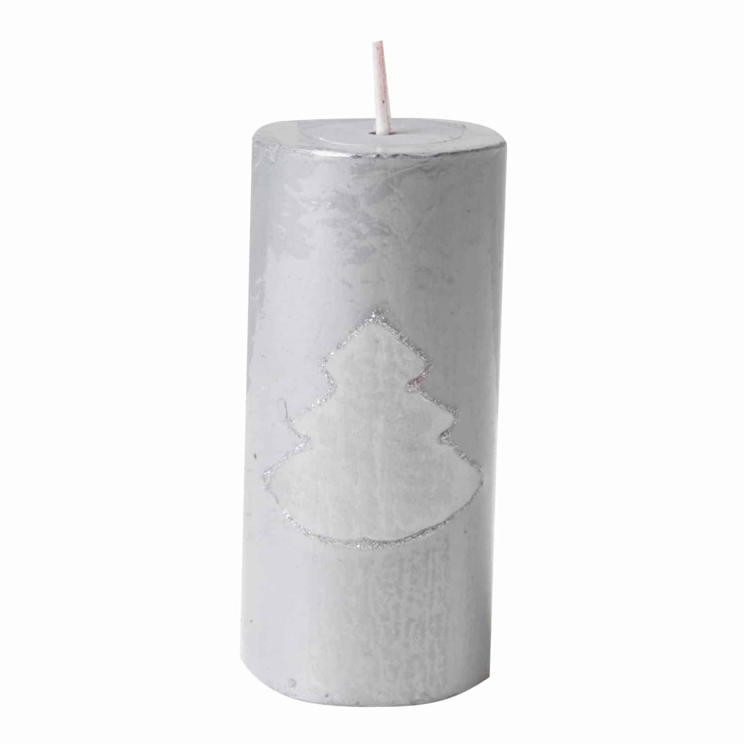 Sé el primero en valorar “Vela Árbol De Navidad Pilar Metalizada Plateado MONICANDLES 10 X 4,5 Cm”