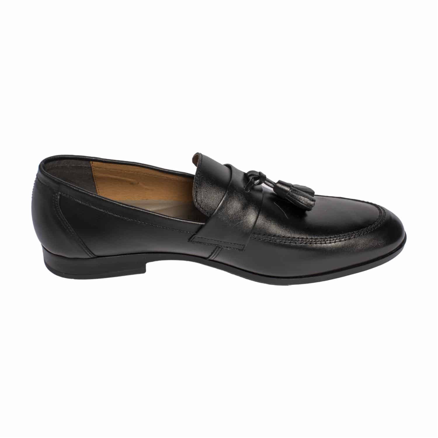 Zapatos formales tipo mocasín, confeccionados en una combinación de cuero y material sintético, que ofrecen durabilidad, elegancia y confort. Su diseño clásico y sofisticado los convierte en una opción ideal para ocasiones formales o de oficina